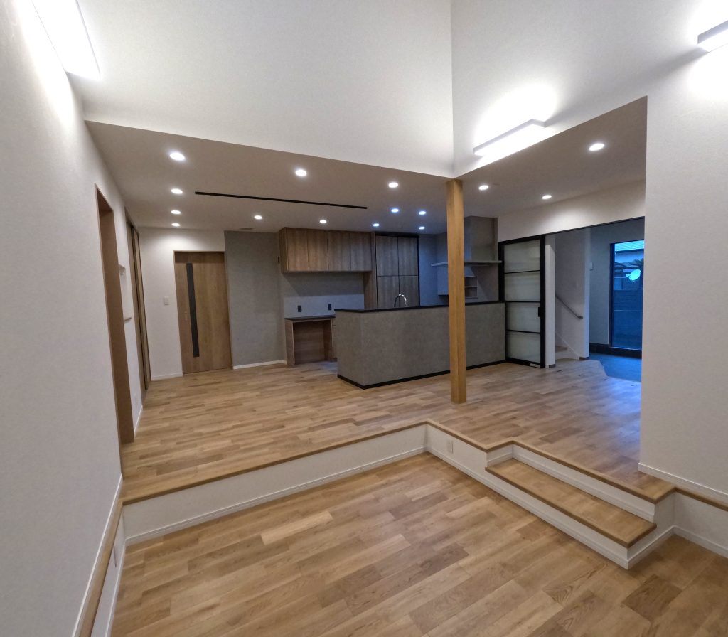 吹抜のリビングと、薪ストーブがアクセントになった素敵なお住まいが完成しました。